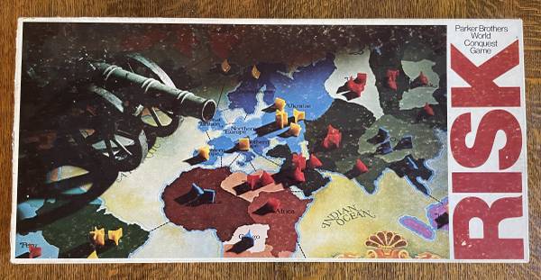 Complete original game, including rules. Box lid is torn in one corner.