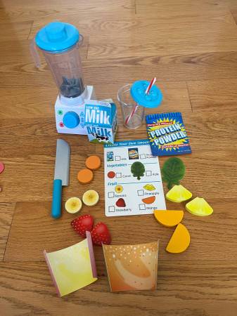 Melissa & Doug smoothie blender toy set. In like-new condition, from smoke and pet free home. Cash only, local pick up only, no scammers. If ad is still up, item is still available.
