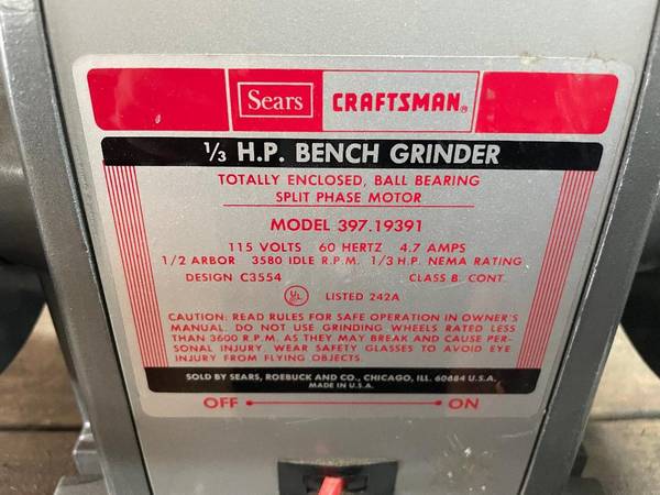 Craftsman 1/3hp Block Grinder in excellent working and cosmetic condition
