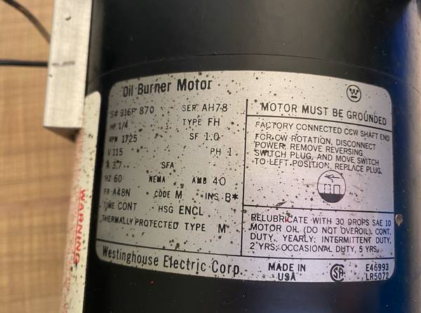 1/4 HP Westinghouse Oil Burner Motor - tools - by owner - sale -...
