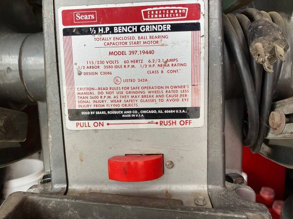 Commercial 7 inch, 1/2 hp with rear exhaust. New grinding wheels. New factory vibration mounts. Excellent condition. - $95