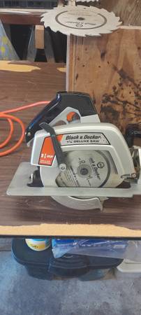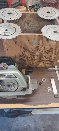 Black and Decker Circular Saw. Model U-231, 7 1/4 inch Deluxe, 9.5 Amps, 4700 RPM. Comes with 5 blades and wooden case. $50.00. OBO