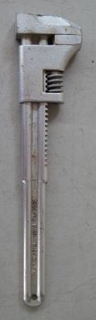For sale is large pipe wrench. This is a Diamond Tool brand, model number C712. This tool was manufactured in the USA. It's incredibly well constructed using heavy-duty forged steel for decades of continued use.