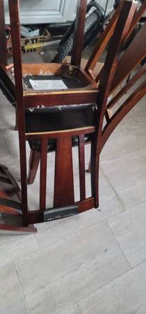 Selling my dining room table with 8 chairs. Table is extedable, one of the leg was repaired about 8 years ago, and still functional. The approximate size 3'width x4' lenth. The chairs are functional but has some cosmetic damage. see pics