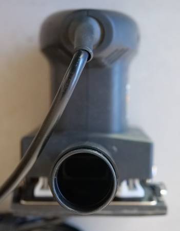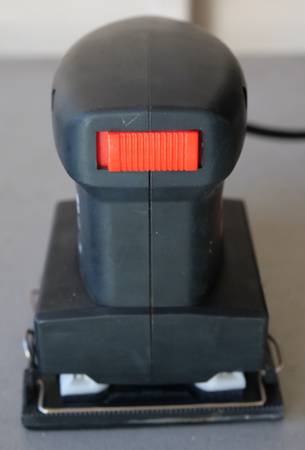 For sale is a palm-sized corded electric powered woodworking sander for sale. This is a Drill Master brand, model number 61509. It has a 1-Amp random orbit motor that operates at 12,000 oscillations per minutes (OPM). It accepts standard 1/4 sandpaper sheets (4.5" x 5.5"). Complete technical details are below.