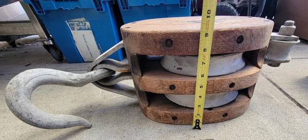 HUGE vintage double maritime Block and Tackle pulley and hook... made by Bestco Blocks See actual pics of item for sale... very heavy duty... and very heavy, too!! Measurements in pictures. $150.00