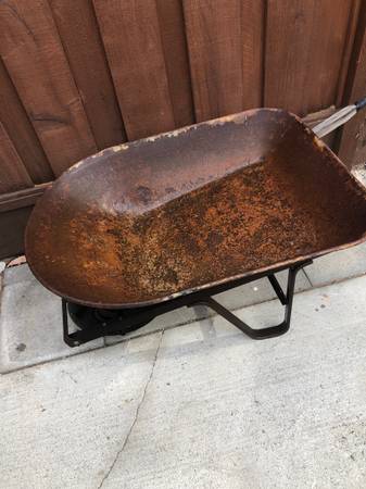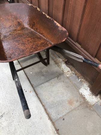 Used. Metal bed, wood handles. Great for simple projects around the home, garden, and yard. Text