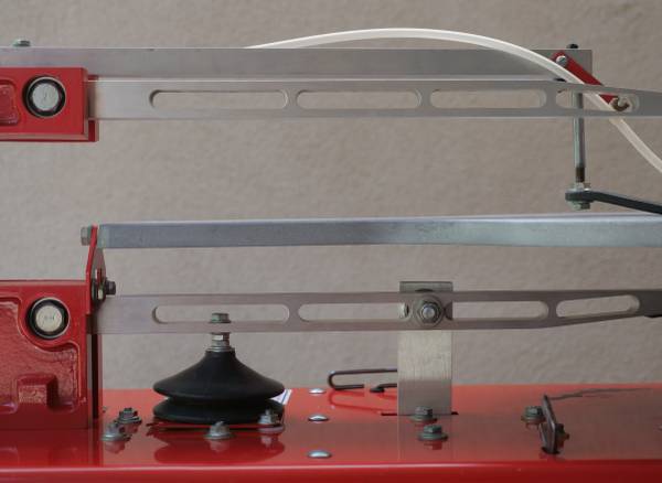 The saw has a powerful Fasco Industries branded 1.8-Amp motor (model number 7195-0108) that operates at three different speed settings. You change the speed setting by moving the motor pully into one of three gears. Picture 23 shows the pully and these three gear settings.