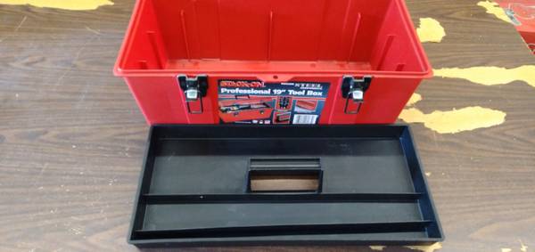 Sturdy tool box with tray. 19in x 9 1/4in x 10in. In great condition. $15.00. OBO