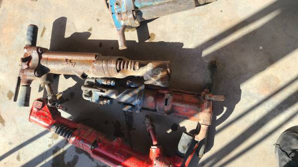Jackhammers, chipper and scrabbler. All tools are pneumatic. Untested. There are 4 - 90lb hammers and 4 - smaller hammers. One Chipper and one Scrabbler. $300 for the lot.