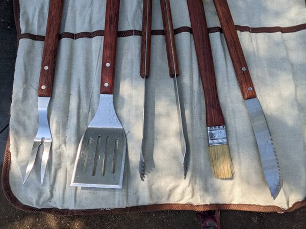 tool tools cook cooking drill outdoor dad gift christmas idea bb q que grilling skl1.2 grande cusine case set 5 lot nos knife blade steak burgers tongs brush fork