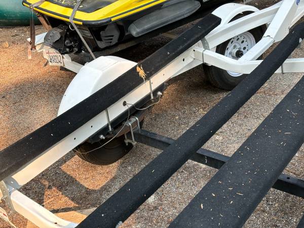Available NOW Dual ShoreLand’r jet ski trailer (only), fits two 3-seat PWCs. Bunks in great shape, clean frame, locking storage box, winches/straps solid, tires good. Storage Box is dented but fully...