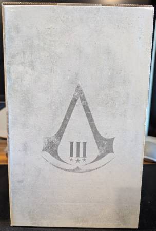A sealed and unopened Assassin's Creed III Limited Edition for PlayStation 3. The box is in good condition, but the slip cover has residue on it from a past sticker.