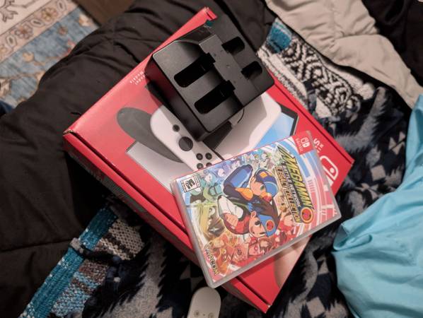 I bought this Switch OLED 2 years ago, And I've only touched it a handful of times since. Looking to sell bundled with all original parts, full body sticker skin, a controller charging station, and an unopened MegaMan game.