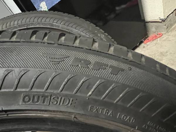 Set of 4 Bridgestone Drive Guard RFT Runflat tires in size 245/45/17. Two tires with 9/32 and two with 5.5-6/32 treads remaining. No patch or damage on the tires. $300. Removed from 2014 Mercedes E-class, fit 2011 - 2016 W212 E350 E250.