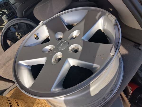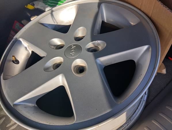 From a 2015 Jeep Wrangler sport all five Wheels OEM silver 5 lug 17" inch wheels