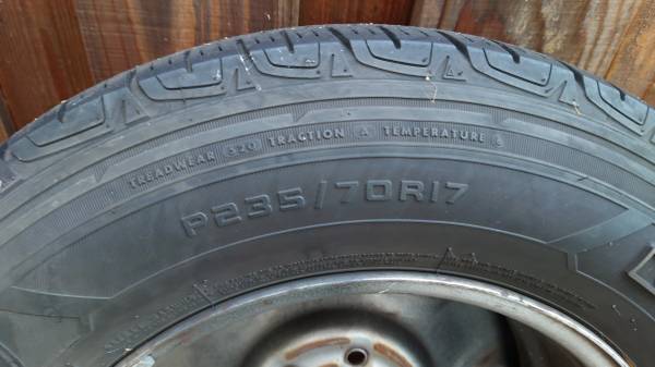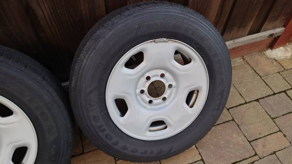 For Sale Used Ford F150 steel wheels from my 2007 Ford F-150. Bolt Pattern 6x135. Tires are Firestone Destination LE2 P235/70R17 but they are used and should be replaced. date codes 2014. $300