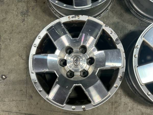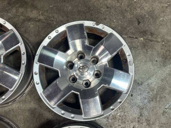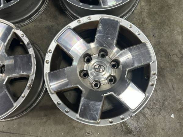 Have a set of FJ cruiser wheels. The wheels are cosmetically in bad shape, needs refinishing,