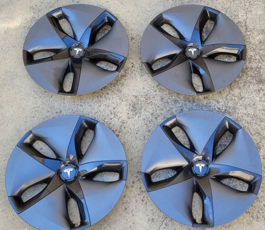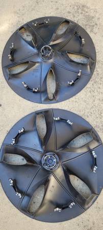 4 wheel covers in good condition. Slight scratches and blemishes on finish but not noticeable from afar. One metal insert clip missing on one of the covers but should not affect installation.