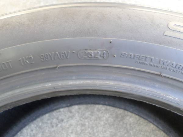 1 tire with about 98% tread, lots of meat