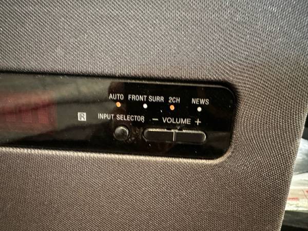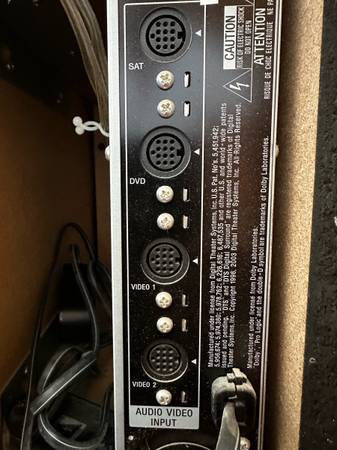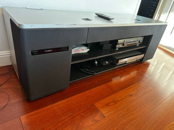 Hi fidelity home theatre stand with built in speakers.