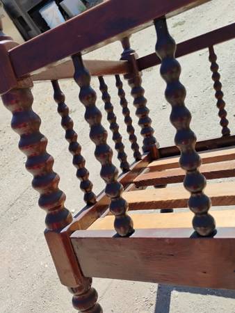 Antique cradle crib. Best for display or toy play uses. Wood with pad cushion