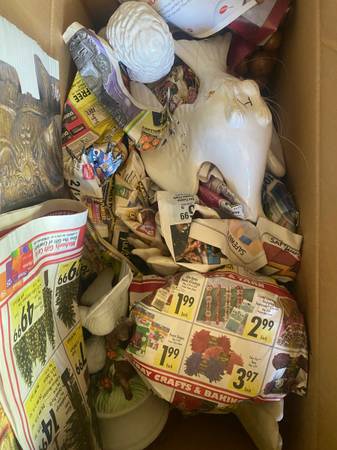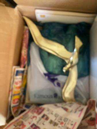 Cleaning out mom’s storages and giving back to the community. Some clothes, coffee mugs, even some Christmas. Great for resale or gifts. Everything is free but must take whole box. One frame has...