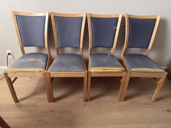 IKEA dining chair (4 pcs) Sturdy and comfortable, just need some TLC with upholstery/cushion.
