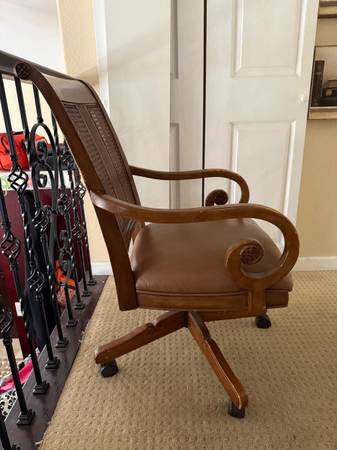Heavy and solid leather office chairs. Some scratches on wood and small tears on seat on one of them. Located near Morgan Hill Library. If the as is up, it’s available.
