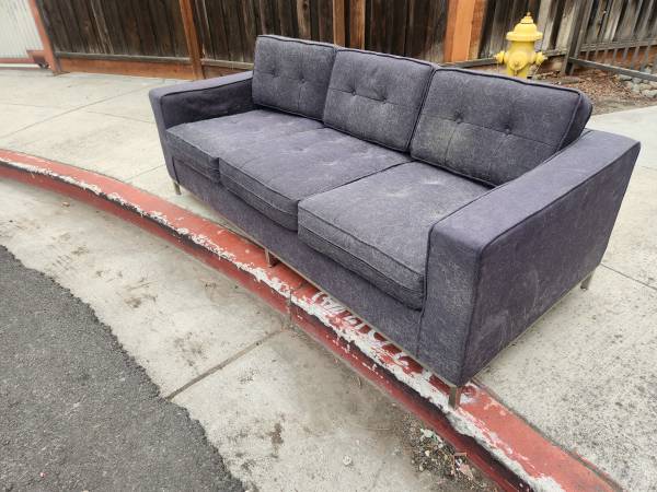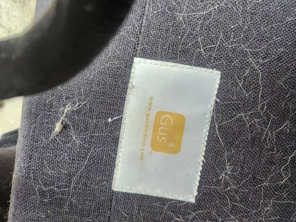 Midcentry , modern large sofa , has dog hair no rips or tears to the upholstery. Needs cleanning This is a high quality Guss brand. First, come first serve, please.The sofa is a very heavy.