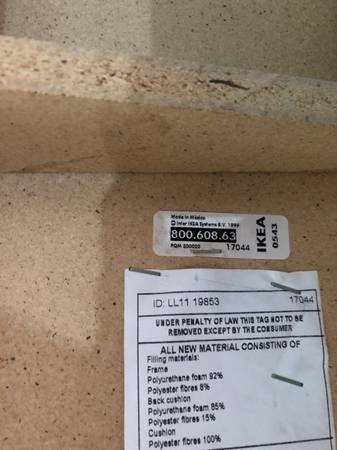 FREE Ikea “Mysinge” convertible sofa. Arm rests and backing can be removed as needed. From smoke-free and pet-free home. Complete couch cover is removable and machine washable. Dimensions are 74”...
