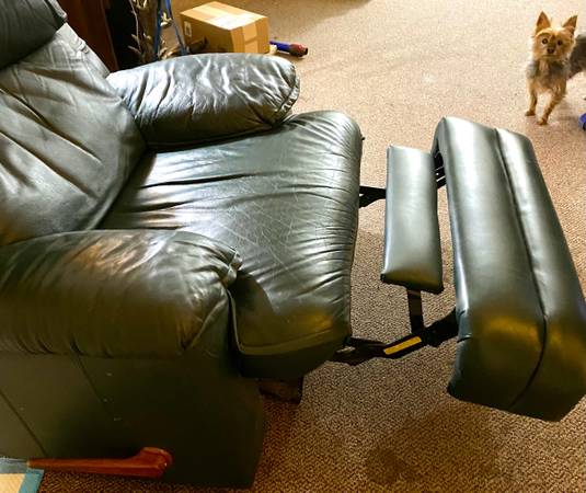 Older leather recliner, but still works well and comfortable. You pickup and haul, probably need two reasonably strong people to get it out, unfortunately we can’t help lift. Please respond with a...