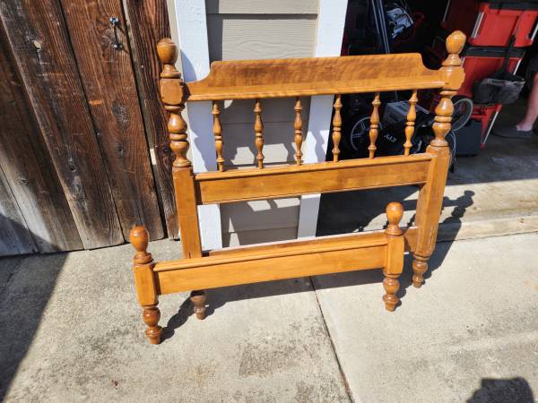 Excellent condition. Only a few scuffs that would not be visible once the mattress was on. Footboard and rails are included but are not original Ethan Allen - they are handmade to match.