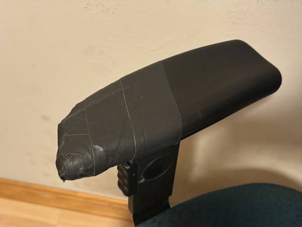 Office chair - tilt base, tilt back, height adjust. Arm rest damaged has been taped over. Contact me to arrange pickup.