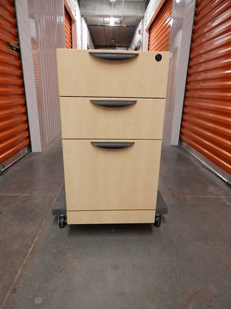 I think this was a pedestal for a desk, as it is missing a top. Would make a nice set of drawers for hobby or shop use with the addition of a piece of plywood on top. Very nicely built of heavy particleboard, much heavier than the usual cheap ship-flat stuff.