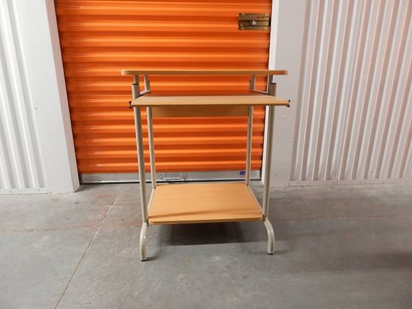 Small computer desk with slide-out keyboard tray. It used to have casters, but they broke, so I removed them. You might be able to repair, or use as-is. See photos. Pick up from my storage, Sunday...