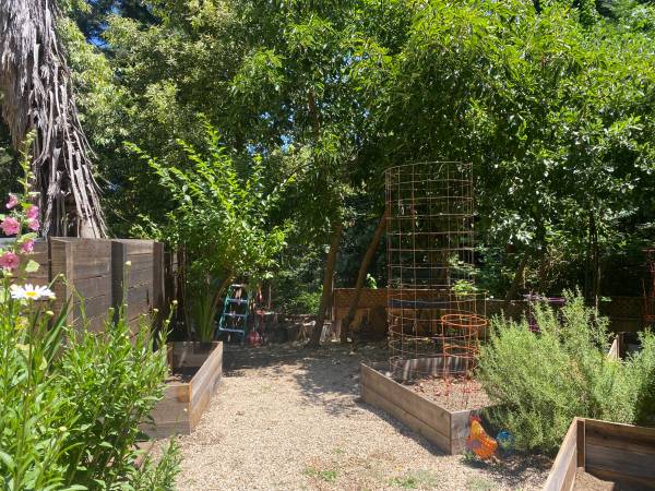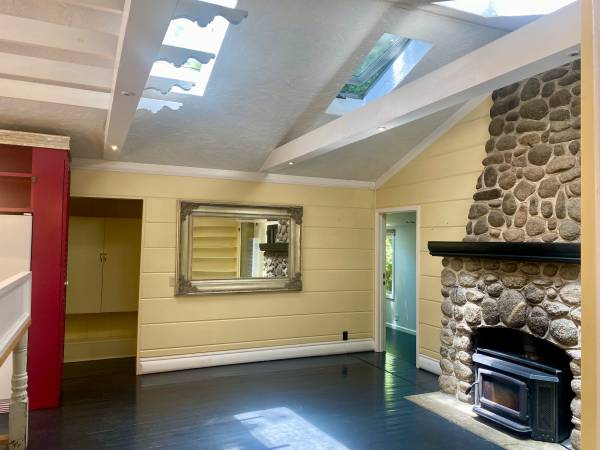 Beautiful 1932 Cottage with stone fireplace, on the hill above Ben Lomond, has a large private yard, and an organic garden with avocado, peach, plum and apple trees. Plus an Outdoor Studio/3rd BR with large windows and skylights and air conditioning. The cottage sits in a lush tranquil setting on a quiet single lane country road. Features include attractive architectural details, cheerful interior colors, granite and butcher block counters, French windows, skylights, and wood floors. 15-20 min to Santa Cruz, 10 min to Scotts Valley, close to popular high quality restaurants, venues, local boutiques and shops.