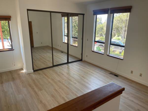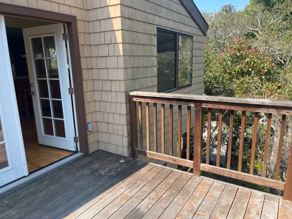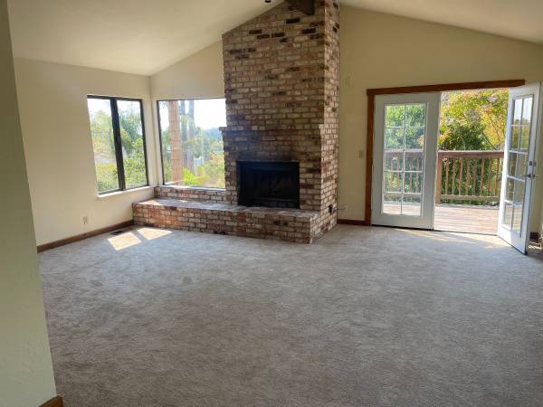 This beautiful 2 story home has brand new carpets and new wood flooring throughout. The desirable neighborhood is close to town with large lots. The kitchen has a refrigerator, gas stove, oven, dishwasher and deep stainless steel sink. The ample countertops make meal prep a pleasure. Friends and family can sit nearby at the breakfast bar to keep you company. In the adjoining front room you will find a high ceilings and brick wood-burning fireplace with gas starter. Enjoy the huge windows showing off the neighborhood and ocean views. There are two wooden decks on the upper level.. There are two full bathrooms downstairs and a half bath upstairs. On the ground floor is the large master bedroom. The master bath has large step down shower and double sinks. The other two bedrooms on same lower level, have great separation from the master bedroom. Washer and dryer hookup available. The attached garage has lots of storage. I look forward to showing you around...$4850 security deposit. contact Carol to arrange a showing.