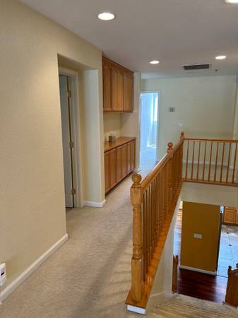 As you walk up the extra wide staircase to the second level, you will notice the hallway is also extra wide with built-in cabinetry.