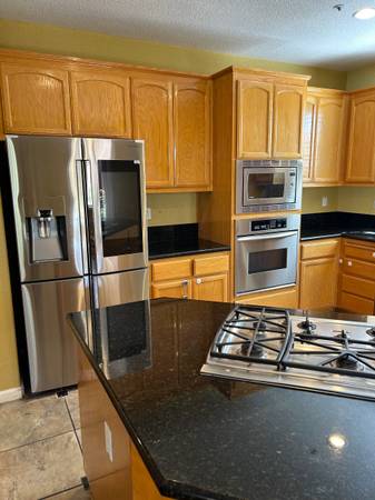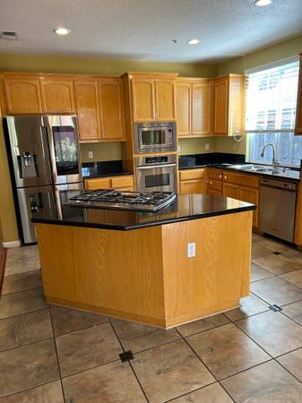On the first level, this home has a spacious remodeled kitchen with Oak Cabinets, gas stove, microwave, stainless steel appliances and tile floors, a living room with a gas fireplace and large den/game room/2nd living room.1 of the 6 bedrooms and a full bathroom with bathtub are also on the ground level.