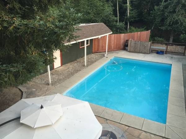 Pool house one bedroom one bath in Scotts Valley .On one acre with creek view .Back deck with large back yard. Two other houses on the property. The pool is shared. PGE, Water and Garbage paid By Owner. Renter pays for their own propane tank. Tenet is moving, some pictures are not great.