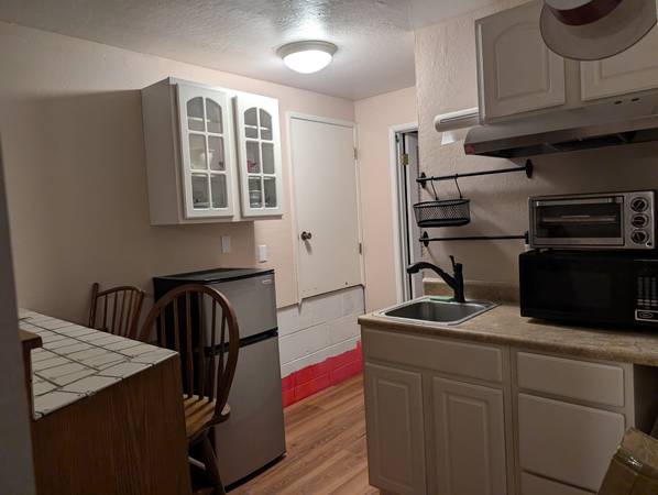 Charming studio in Mount Hermon. Shared front entrance leads to your private entry. Kitchenette with small fridge, microwave, countertop air fryer/oven, and shelving racks. Full bathroom, large living space. Under stairwell storage and closet. Recently painted and flooring installed (pictures are as in progress) Fireplace is non-functioning. Partially furnished or unfurnished, full of sunshine. This studio is the lower level of a family home, our main living area above.