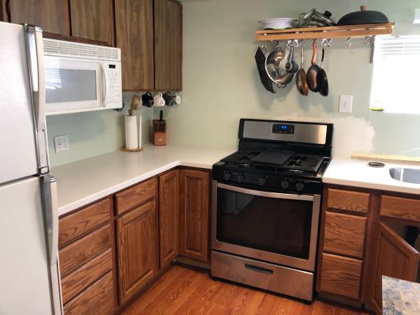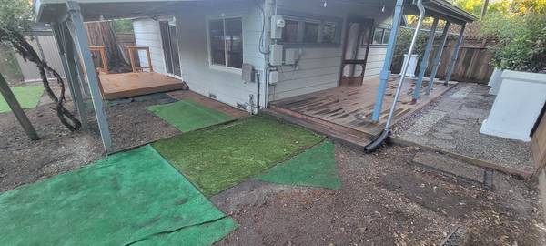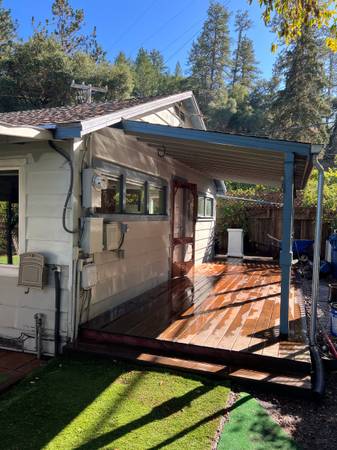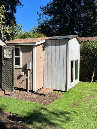 cute, sunny 2 bedroom with one bath. close to town location. fenced in yard, with several storage sheds. garbage and water included in rent. laundry hook ups, two porches.