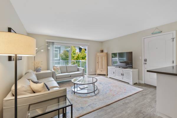 Gorgeous 2Bd/1Ba end unit condo so close to Twin Lakes State Beach! This unit features a totally remodeled kitchen and bathroom with fresh white cabinets, stainless steel appliances (including a dishwasher, stove and refrigerator) and quartz countertops. The primary bedroom offers a very generous walk-in closet with a full length mirror. The large windows provide lots of light and views of the beautifully landscaped grounds. Enjoy your morning coffee and your evening glass of wine on the balcony off the living room. The community pool is heated and available for use year-round. An on-site gym, barbecues and coin-op laundry facilities are also provided. An assigned parking space and an additional permitted guest parking permit are included. Fabulously located close to a number of beaches, the Crows Nest, the Harbor, Starbucks, the Sunday Farmers Market and more.