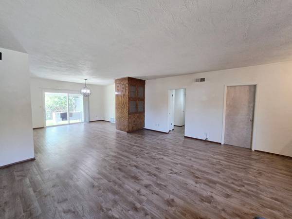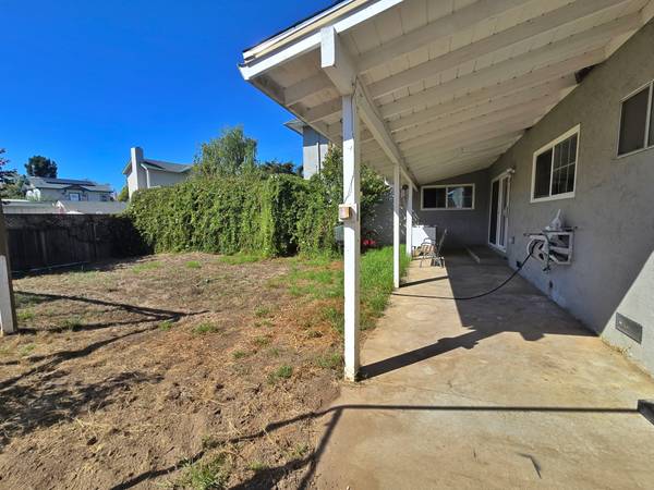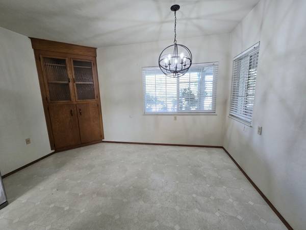 The home boasts three spacious bedrooms with ample closet space, including a primary suite with a large bathroom and generous counter space. Additional highlights include a formal dining room with built-in cabinets, a large living room with a cozy fireplace, and a private fenced yard perfect for outdoor enjoyment.