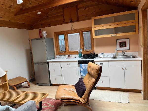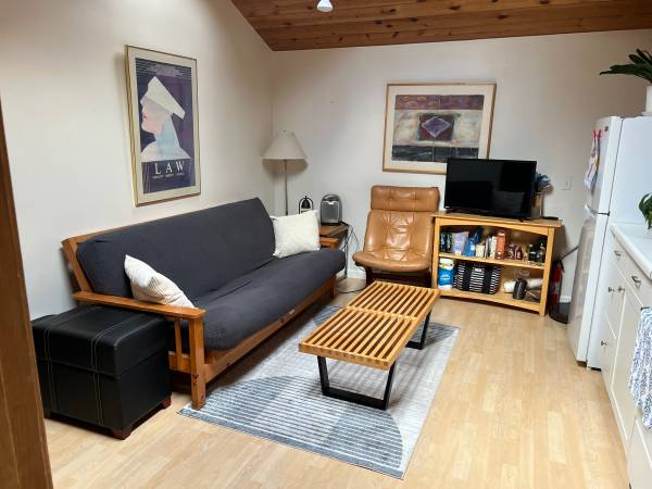 Super cute and quiet, semi-furnished one-bedroom backyard cottage in East Morrissey neighborhood. Alley access.