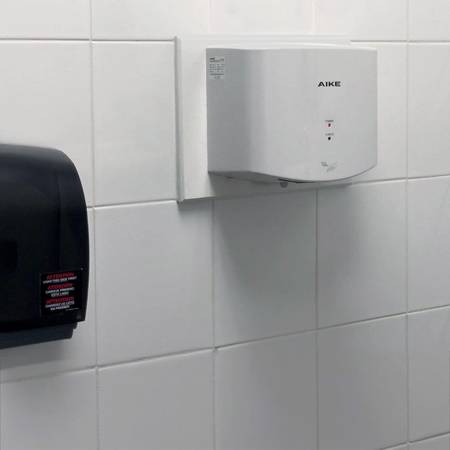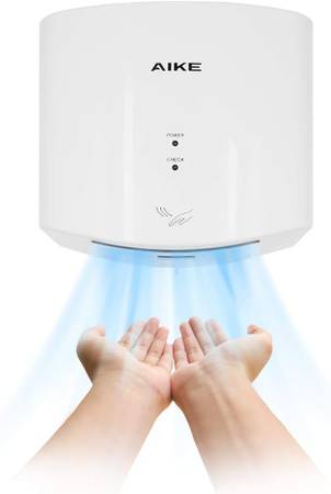 New (open box) AIKE Air Wiper compact hand dryer. 110V/1400W white unit with 2‑pin plug. Never installed – removed from box only to inspect.