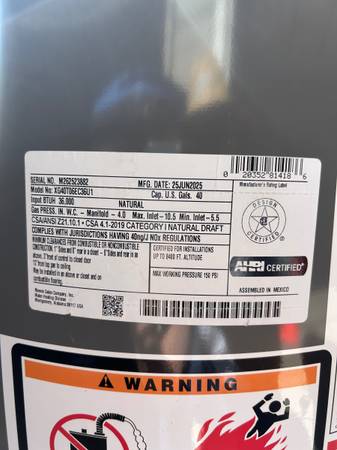 Like new water heater 40 gallons natural gas, only used for 2 months because of remodel
