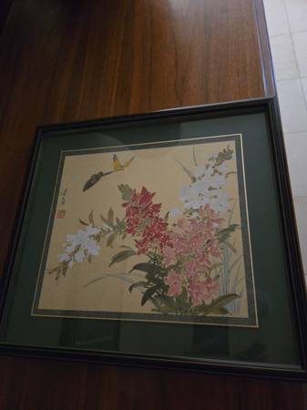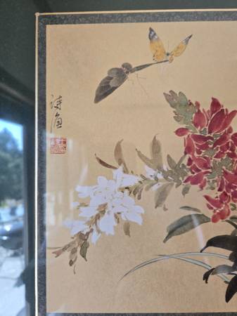 This one of a kind painting was purchased at a San Mateo county art fair and has the artists official stamp. Framing was about the price that I am asking for the art and frame. I observed her working on other paintings at time of purchase about 40 years ago.