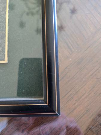 Painting on heavy, specialty, artist card, placed on forest green mat, under glass, with delicate black frame and thin lined gold. Sorry for reflections on glass. No damage! The pics do not show the vibrancy of the actual colors.